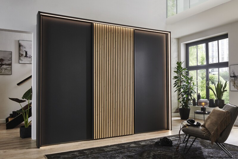 Trendiger Schwebetürenschrank Dahm mit Lamellen ab 1499,- Euro!