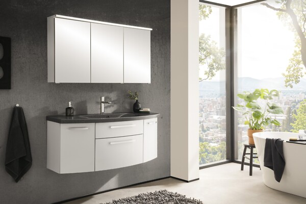 Die hochwertigen Fronten und die raffinierten Details lassen alles im harmonischen Einklang erstrahlen – ein Erlebnis, das seinesgleichen sucht. Stell dir vor: Beim Zähneputzen, Stylen vor dem Spiegel oder einfach nur beim Entspannen – mit der vielfältigen LED-Beleuchtung verleihst du jedem kleinen und großen Moment des Alltags die perfekte Stimmung.